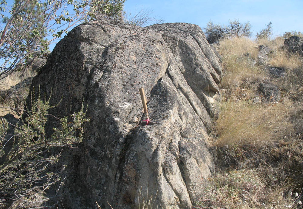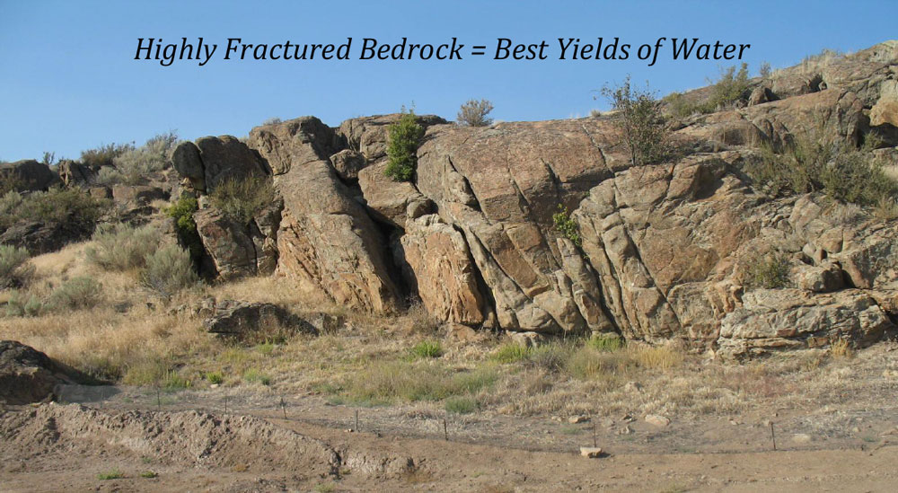 Fractures found in granite bedrock offers a limited source of water (or no water) in wells drilled at rural home sites. Bedrock that exhibits a high degree of fracturing (top is a source of the highest yielding wells. Geophysical investigation methods available can locate the optimum drill sites. Finding water at rural home sites is commonly a challenge due to hard rock conditions that limit water flow rate from well. The nature of the hard, dense granite with little or no space to store water (lower image) is reason for difficulties.