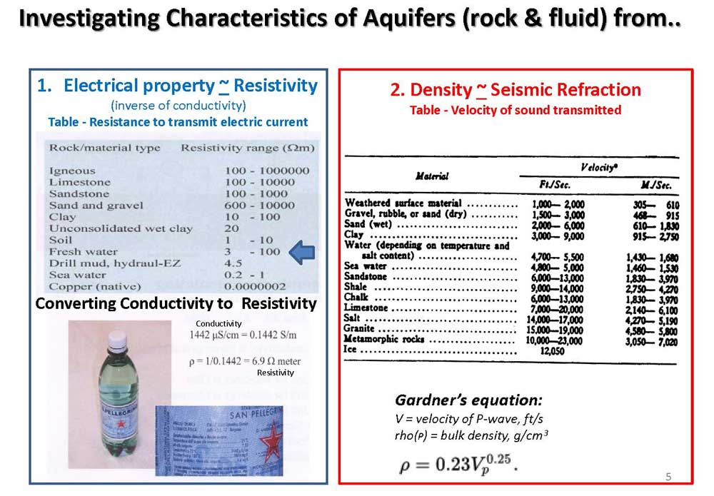 Investigating Characteristics of Fluids (Aquifers) and Rock Materials from their Standard Electrical and Velocity Properties